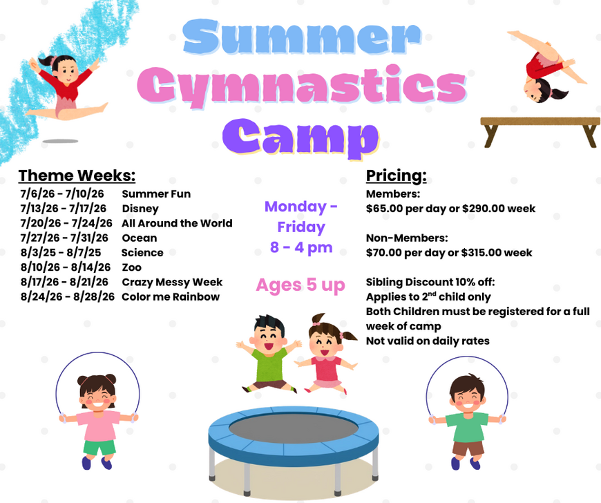 - All camps follow our Gym rules. Please refer to Policies & Rules tab for all information.